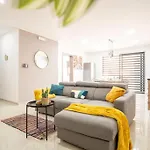 With a balcony and a sitting area that are furnished with a sofa and modern conveniences like an air conditioner, Modern, Bright & Spacious Apartment Near The Sea is perfect for a comfortable stay. Guests can make the most of their downtime at the property with the availability of media facilities, such as a TV, ensuring a pleasant leisure experience. A bathroom comes with a separate toilet and a shower, along with a hair dryer and bath sheets.